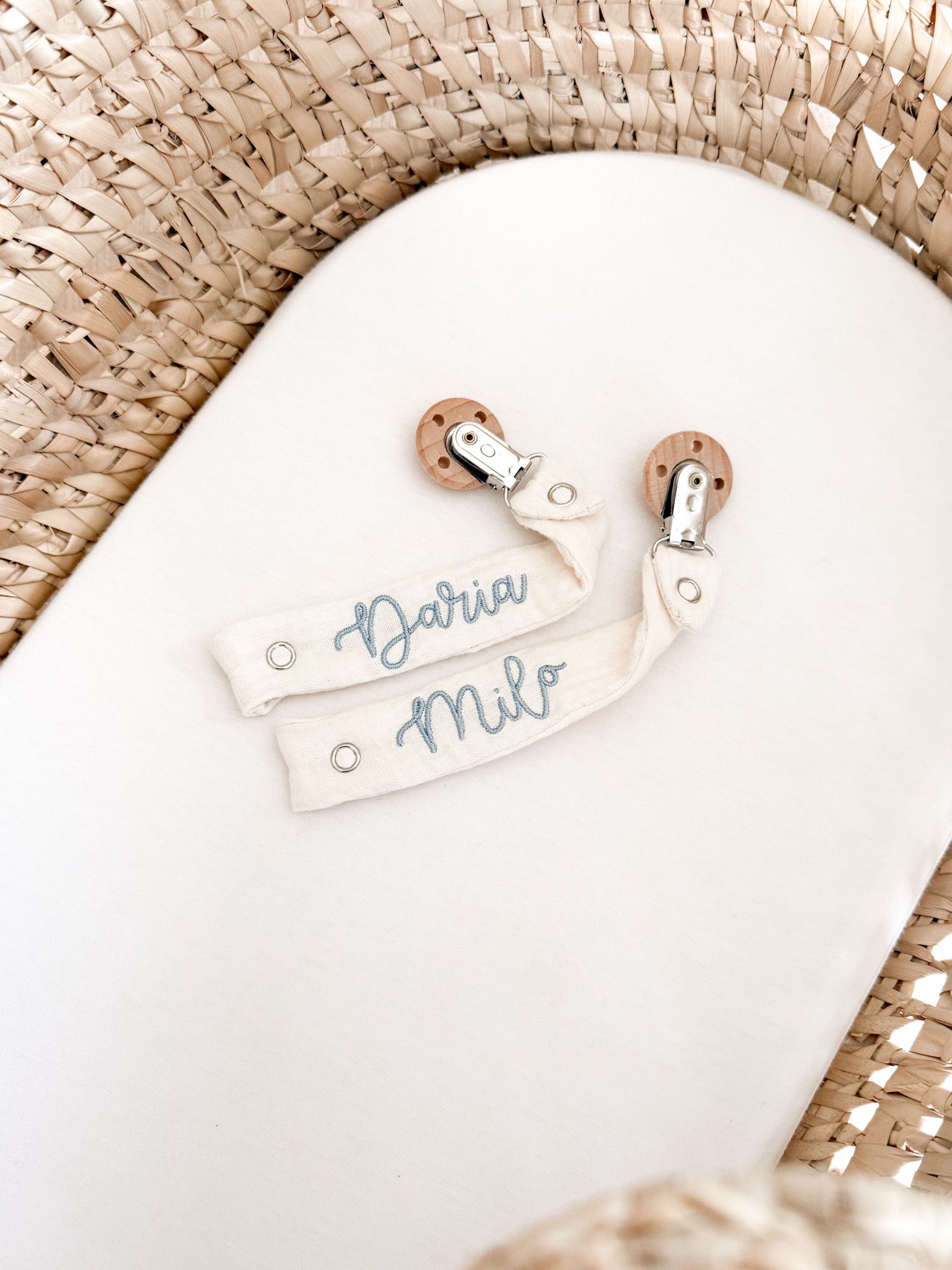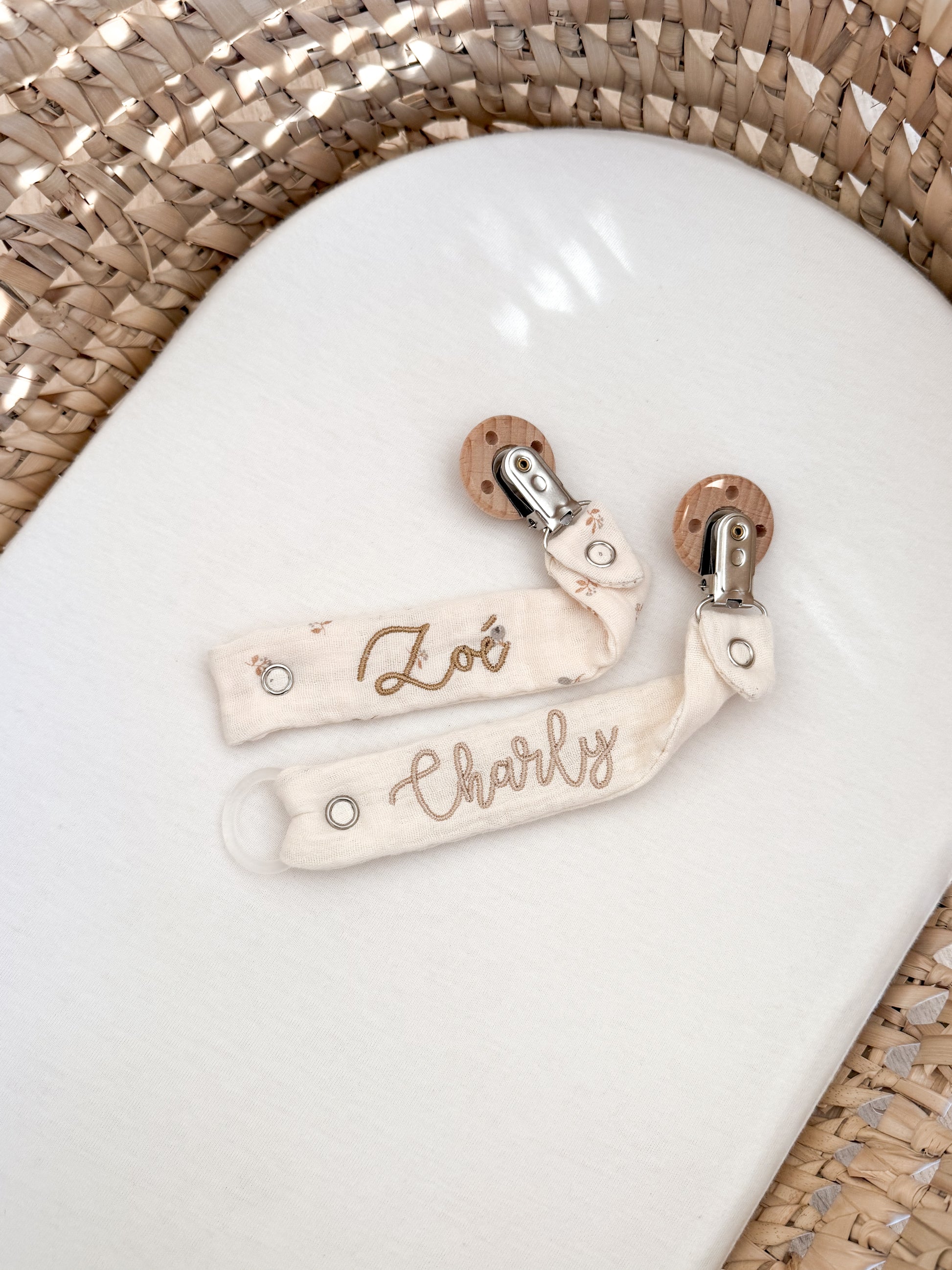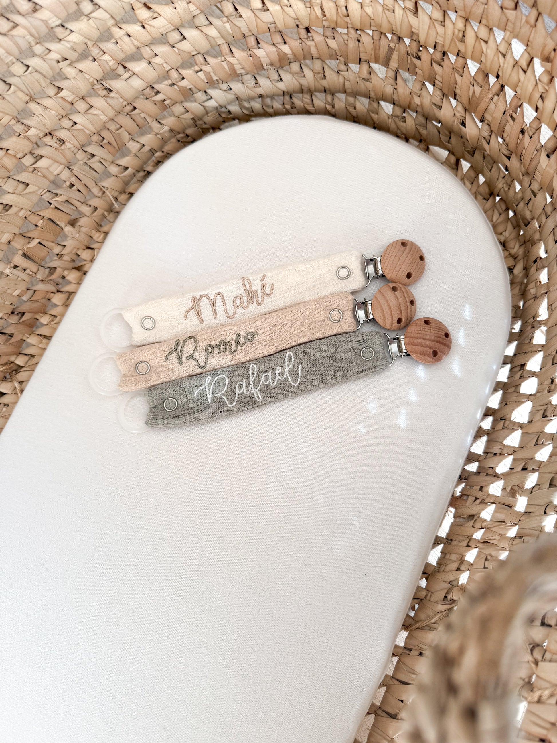 Envie d'un attache-tétine unique ? Personnalisez-le avec un prénom ou un mot tendre.