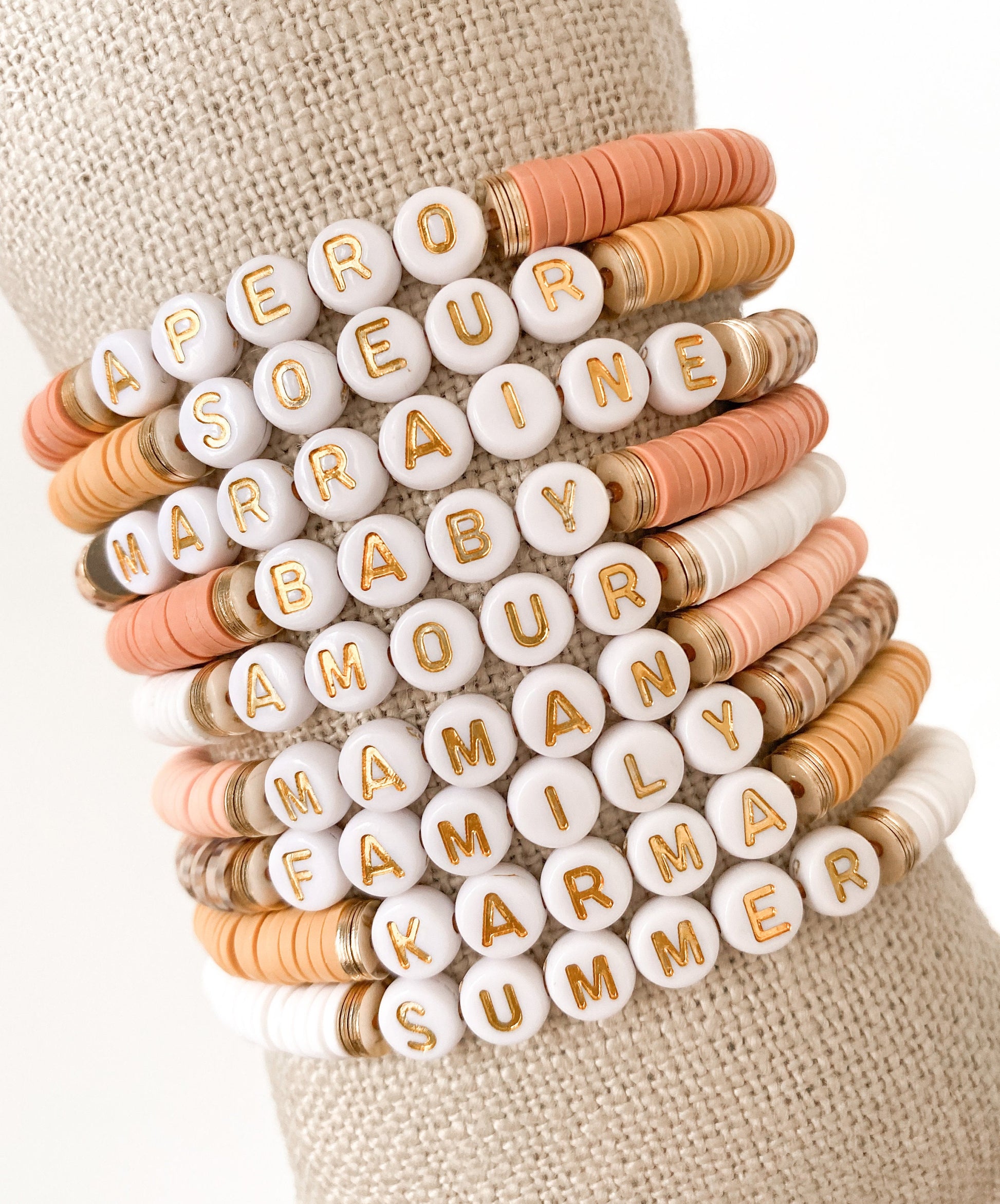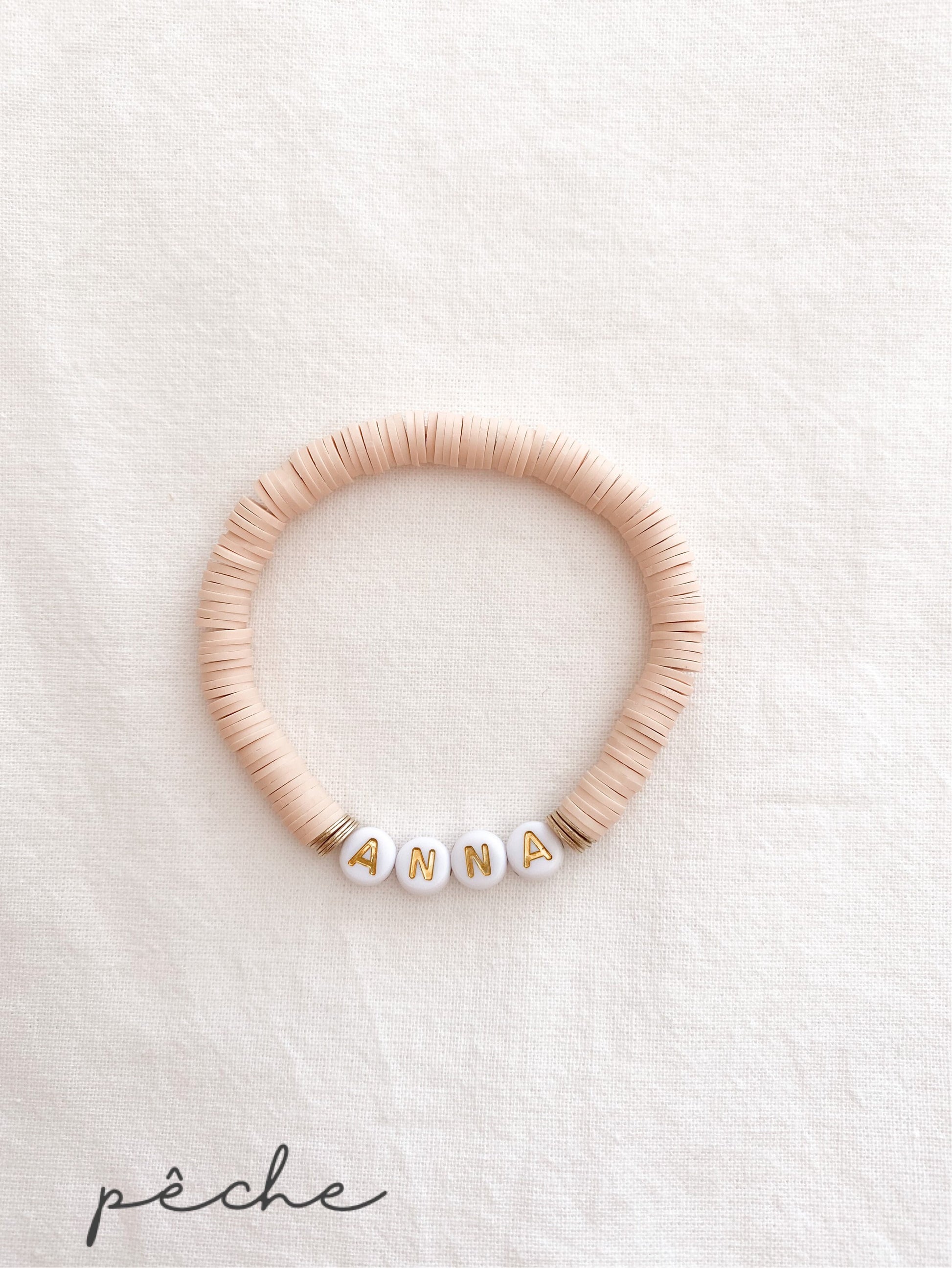 Offrez un bijou unique avec ce bracelet en perles heishi personnalisable : choisissez un prénom, un mot ou un symbole pour créer un accessoire à votre image. Fait main, élégant et coloré, il permet d’ajouter un prénom, un mot ou un symbole pour un cadeau unique qui plaira à maman, enfant ou amie.