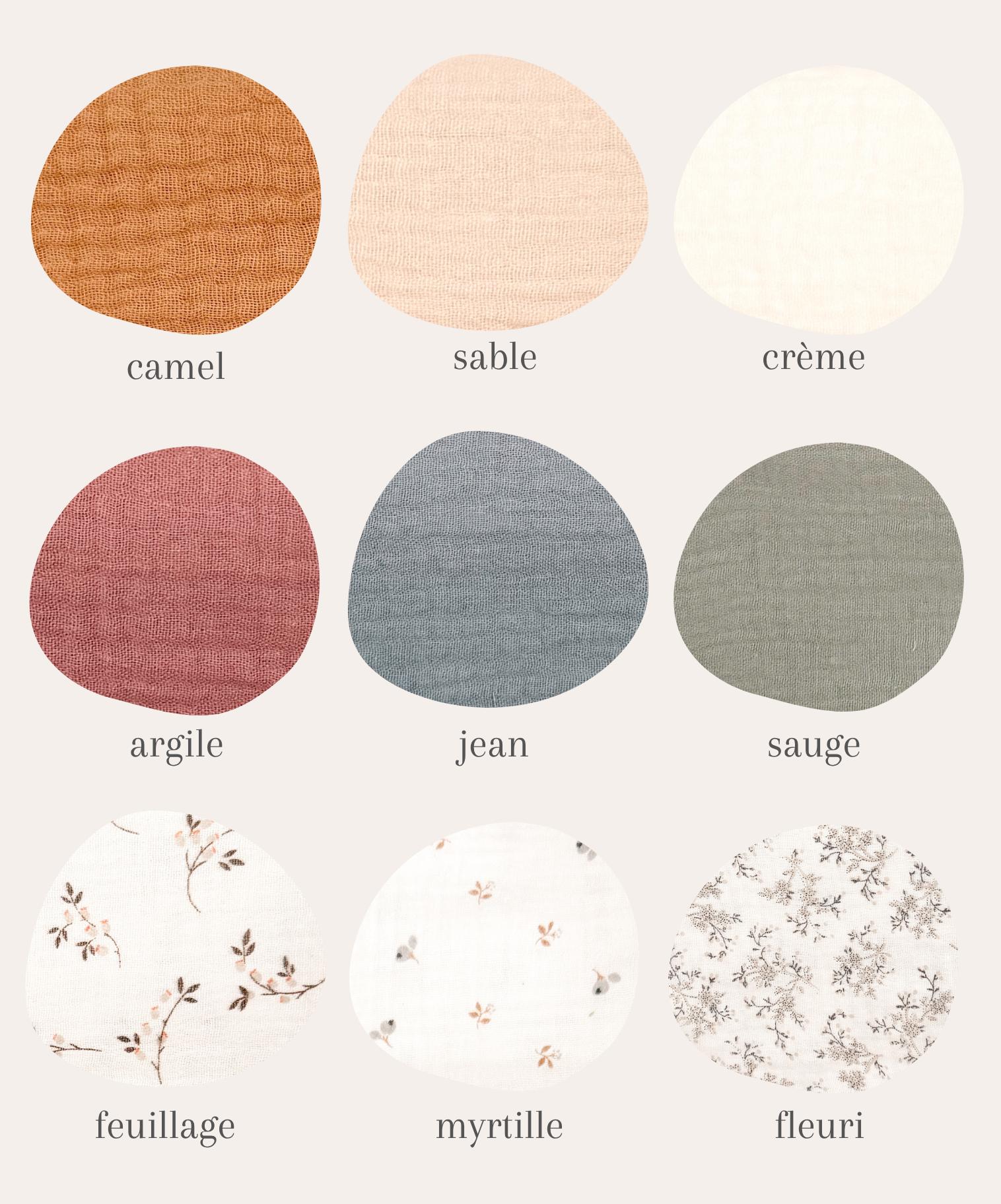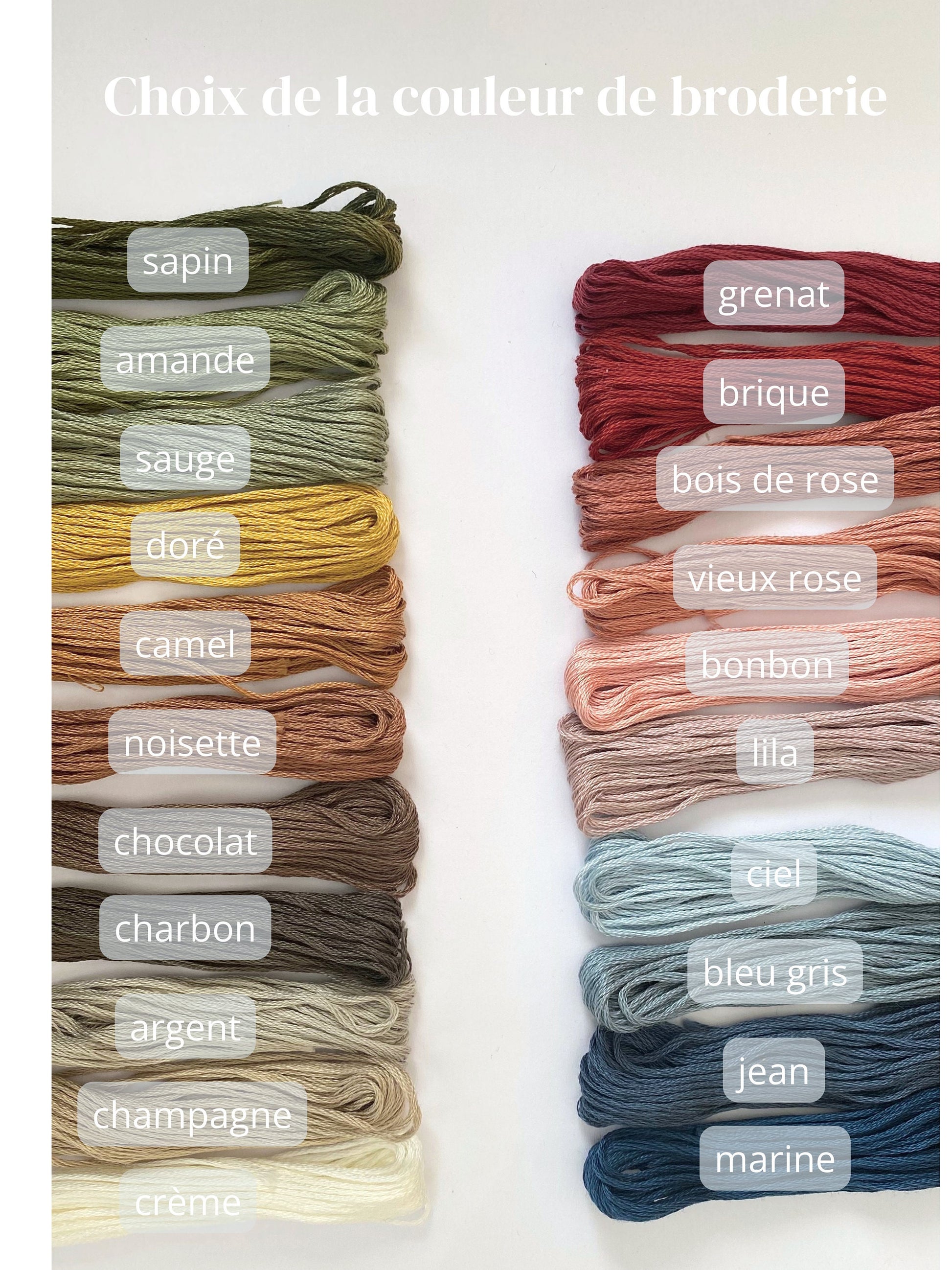 Choisissez vos tissus, vos couleurs et votre broderie pour un article sur mesure.